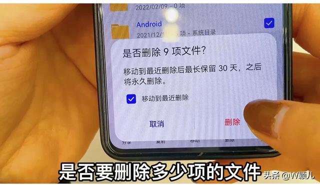 后面呢就会出来小框,我们可以把它选上,那我们在这里呢,还可以看到这个全选的图标。那如果你感觉一个一个的删除太慢的话,你就可以给他全选,全选之后呢点击全部删除。我们点击删除,这里有提示是否删除这么多项的文件,移动到最近删除,最长的可保留30天之后呢将永久删除,那我们就可以点击删除。然后呢他就会正在删除。我们把它删除掉呢,