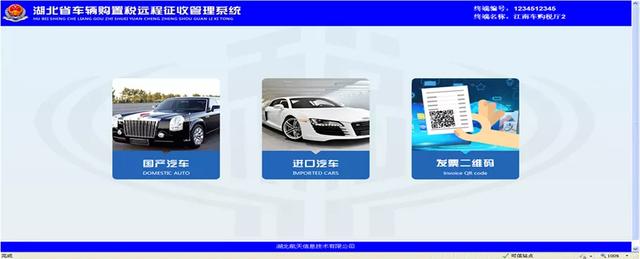在首界面点击申报缴税,进入缴税环节,在此界面中,分为国产车(信息采集)、进口车(信息采集),纳税人按持有纸质资料对应选择进行后续操作。
