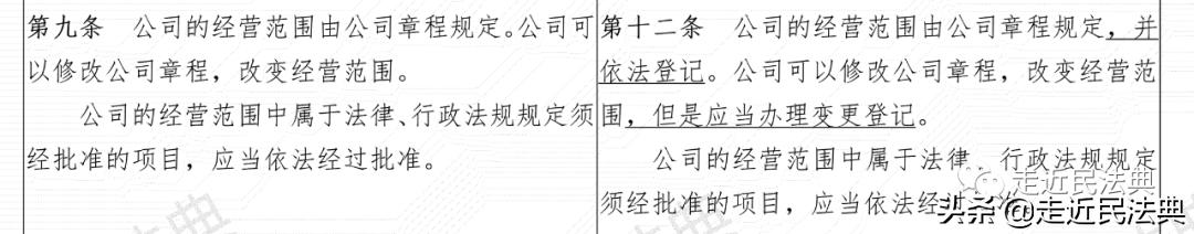 第9条要点:本条是关于公司经营范围的规定。公司经营范围,指公司在经营活动中所涉及的领域,具体表现为具有什么样的生产项目、经营种类、服务事项等。根据规定,公司经营范围由公司章程规定。公司依法享有经营自主权,有权自主决定在什么领域中从事经营活动,由公司章程规定经营范围,既是赋予公司充分经营自主权的体现,也是各国公司法通行做法。但需注意,赋予公司经营自主权并不代表对公司经营范围没有限制。按照本条第2款的规定,公司经营范围中属于法律、行政法规规定须经批准的项目,应依法经过批准。所谓经批准的项目,指应当具备特定的条件并经政府有关行政主管部门批准后方可经营的项目。具体至于哪些项目属须经批准的,依照法律、行政法规的规定确定。此外,公司经营范围及其变更应依法进行登记,以维护社会经济秩序的稳定,平衡与保护投资者的利益。相较原规定,本条虽未直接保留应当登记的内容,但不代表草案删除了该内容,包括本条相关内容以及与登记有关的其他内容均被统一放在了草案新增的“公司登记”一章中(下同,不再重复)。