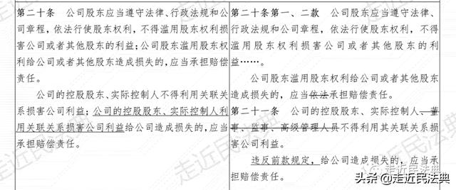 第20条要点:本条与第21条系“法人人格否认”在公司法层面具体体现的规定。本条侧重规定股东滥用权利对公司、其他股东承担的内部损害赔偿责任,第21条则侧重规制股东滥用独立人格与有限责任损害外部债权人利益时所应承担的责任。基于法人制度及其独立的人格属性,股东(成员)与其所设立的公司(法人)之间实现了财产归属与责任、风险承担上的切割。股东为了共同的事业成立公司,并享有股东有限责任和法人独立责任等法律制度优惠以降低风险,其在享受权利的同时,应依法和依章程正当行使权利,这是其的基本义务。股东正当行使权利,不仅是权利不得滥用原则的要求,也是权利、义务平等原则的要求。股东在行使权利时,不得滥用权利损害公司和其他股东的利益,所保护的法益,是公司的内部关系中相关当事方的合法权益。对此可以从两个方面加以把握:(1)在实体法律的遵守方面,股东行使权利不得超越法律规定的边界;(2)在程序方面,股东权利的行使要遵守法律规定的程序。根据本条第1款的规定,只要能够认定股东的行为属于滥用权利损害公司利益或其他股东利益的,首先应当依法认定相关的法律行为、决议行为无效,对由此给公司和其他股东造成损失的,滥用权利的出资人应承担赔偿责任。另需注意,本条第2款明确了控股出资人、控股股东等关联人不得利用关联关系损害公司利益,该款并非新增内容,而是将根据现行公司法第21条第1款转化来,并基于体系上的安排删除了原规定中的董、监、高。所谓法人关系中的关联交易,一般是指具有投资关系或合同关系的不同主体之间所进行的交易,又称为关联方交易。公司法第259条对控股股东、实际控制人、关联交易的具体含义作了明确界定。关联交易本身是一种中性的经济行为。但实践中常有控制法人利用与从属法人的关联关系和控制地位,迫使从属法人与自己或其他关联方从事不利益的交易,损害从属法人和其他出资人利益。为此,从保护从属法人及其他出资人的利益角度出发,对控股股东、实际控制人利用关联交易造成公司利益损失的规定了赔偿责任。