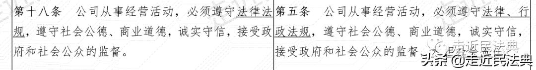 第18条要点:本条是关于公司经营活动基本原则的规定。首先,公司作为社会主体的一类,遵守法律法规是其开展经营活动的前提,也是其最基本、最重要的义务,公司的各项经营活动都必须依法进行。其次,遵守社会公德、商业道德,也是公司从事生产经营活动的重要条件。社会公德,指社会全体成员都应当自觉遵循和维护的道德规范,商业道德,指从事商业活动应当自觉遵循和维护的道德规范。再者,公司开展经营活动,也必须诚实守信。市场经济既是法治经济,也是信用经济。公司与其他主体交易,势必要讲诚实讲信用,这是开展经营并持续运营下去的必要条件。当然,诚信原则也是民法典规定的民事活动基本原则。最后,公司从事经营活动是否遵守法律法规,是否符合社会公德和商业道德,是否恪守诚实守信,应自觉接受政府和社会公众的监督。因为监督可促使公司的经营活动更加规范化,更好地维护国家利益、社会公共利益以及公司自身合法权益,维护市场秩序,进而促进公司健康长远发展。需注意,现行公司法第5条最后规定的“承担社会责任”,修订草案中并非被删除,而是调整到第19条了。