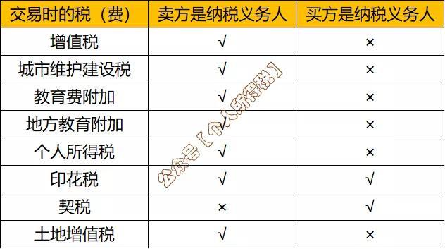 2、依照税法,买卖双方分别涉及税种如下表: