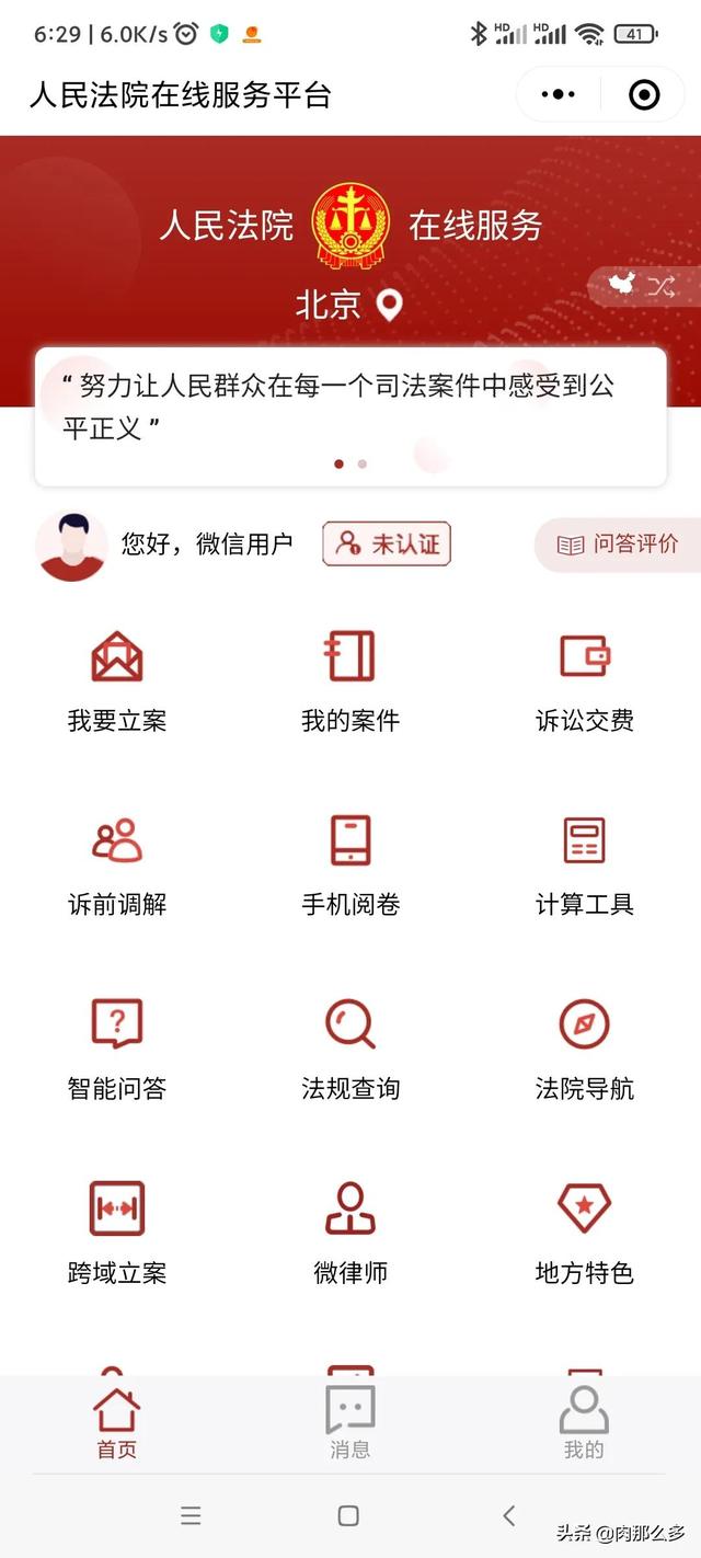 第一步:打开 “北京移动微法院”,进入小程序主页面,选择“我要立案”后,选择“微信立案”,“是否接受调解”选项下点击“不同意”按钮。说明:此处“不同意”调解并不代表案件不能调解,后续会有法官进一步联系。