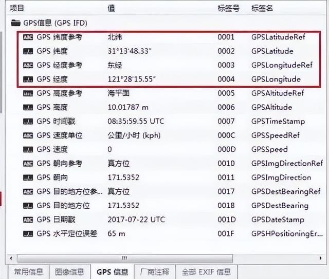 其中最关键的GPS相关信息,使用经纬度格式转换工具转换过后就可以在地图上找到照片的准确拍摄地点。