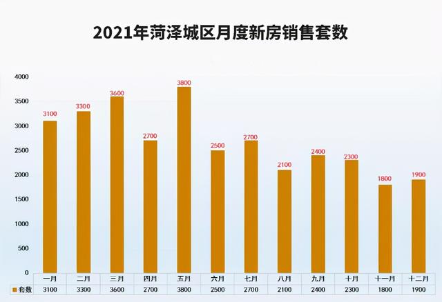 2021年下半年,菏泽的成交开始锐减,12月仅卖出1900套房,相较于1月降幅达40%。