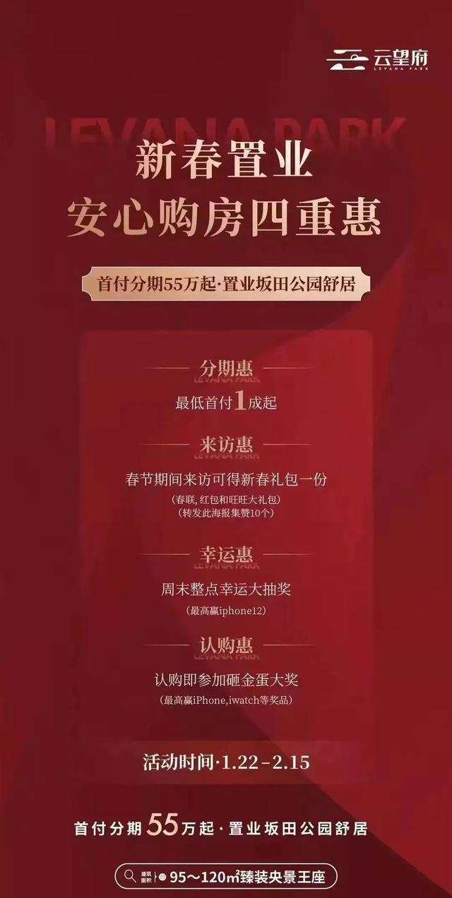 比如深圳,春节期间有开发商已经宣传1成首付即可上车,只不过这里的低首付比例不是银行限贷放松,而是民间首付分期。