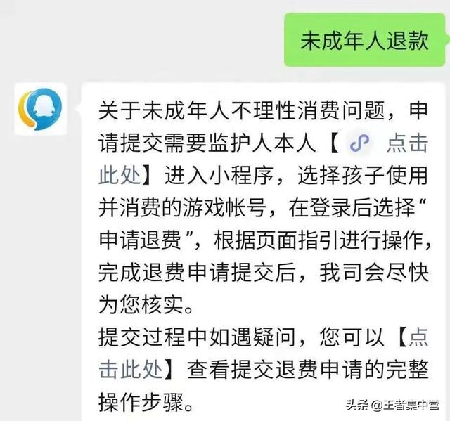 一共有两个方法可以退款,第一种是在微信搜索找到腾讯客服,回复“未成年人退款”,就会有相关链接可以退款。