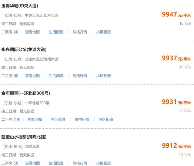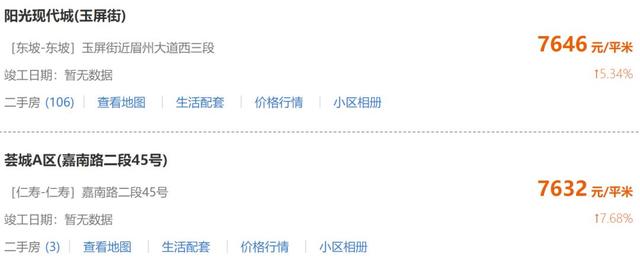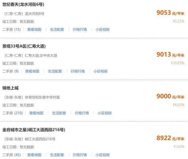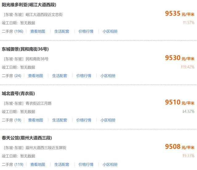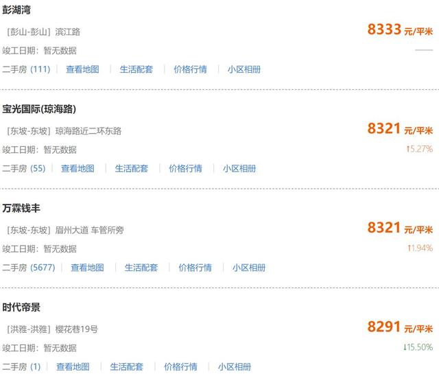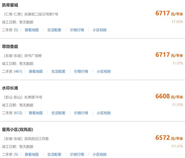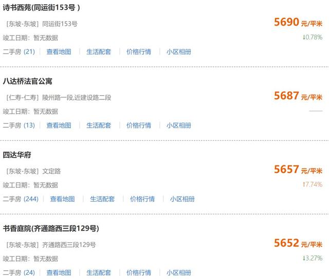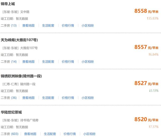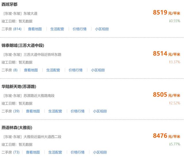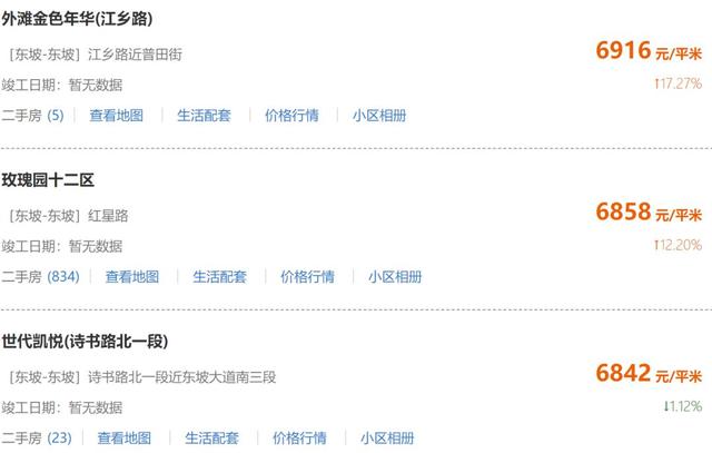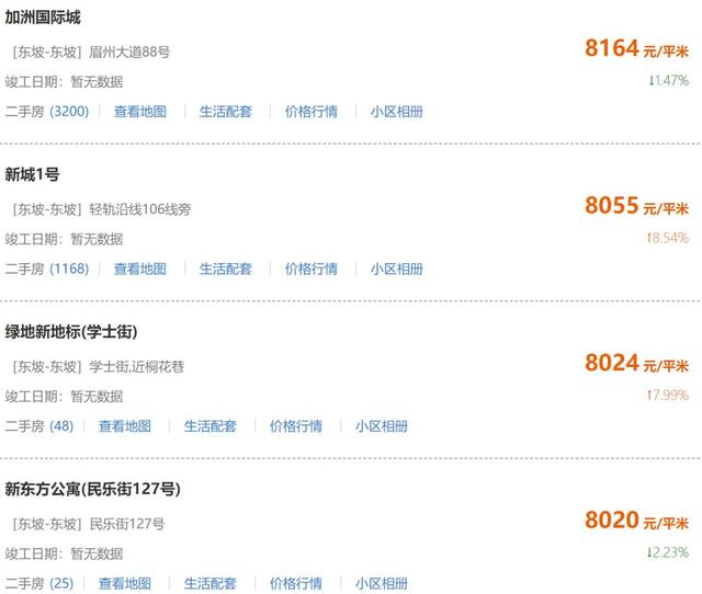 上图为吉屋居数据,东坡区新房价格均价8243,二手房均价6225,都上涨了。