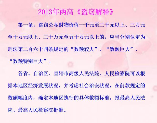 再看2013年《最高人民法院、最高人民检察院关于办理盗窃刑事案件适用法律若干问题的解释》(以下简称《盗窃解释》)是怎么规定的?