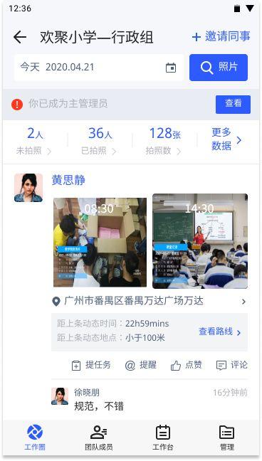 管理者、其它部门的同事可通过马克水印相机统一发布任务和公告,设置待办任务内容及完成时间,并指定相应的员工去做,实现高效工作分配。员工接受到任务后,需要在限定时间完成,并且将完成结果返回到系统,交由任务发布者审核,无需过多的流程,也能实现工作效率翻倍。