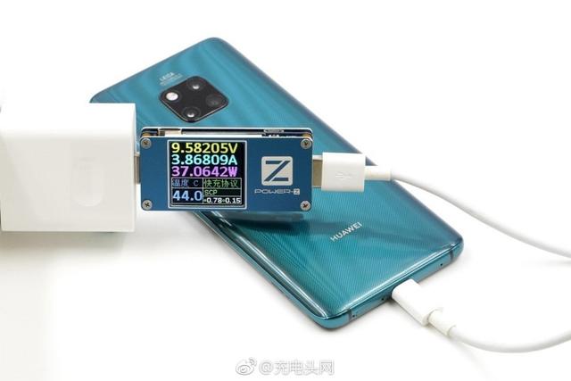 通过POWER-Z FL001S屏幕可以看到,mate20 Pro实测功率为9.58V 3.86A,37.06W。