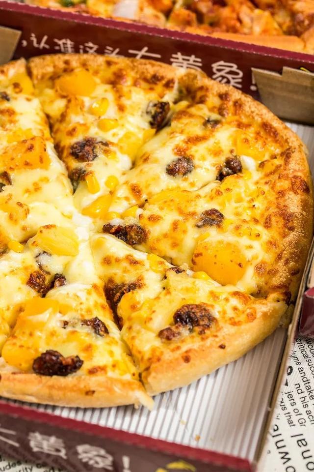 作为比萨里面的“霸主”!榴莲比萨的份量一上场就是叱咤风云的存在,扑面而来的榴莲香气让你的眼球完全挪不开。