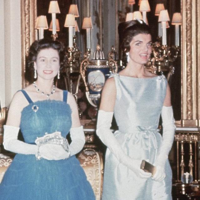 1961年,年轻的伊丽莎白二世和杰奎琳,在宴席上狭路相逢,两人美得平分秋色。