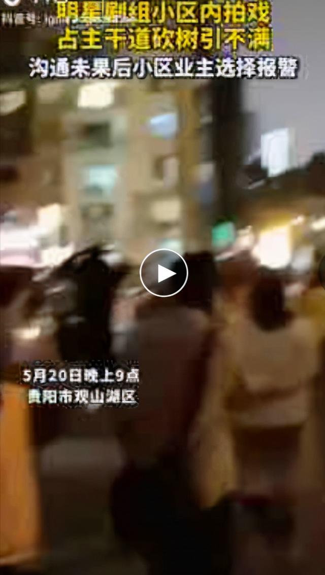 明星去小区拍戏,剧组直接把主干道的树木砍了。