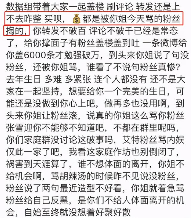 前几天张雪迎的姐姐在粉丝群里辱骂粉丝。