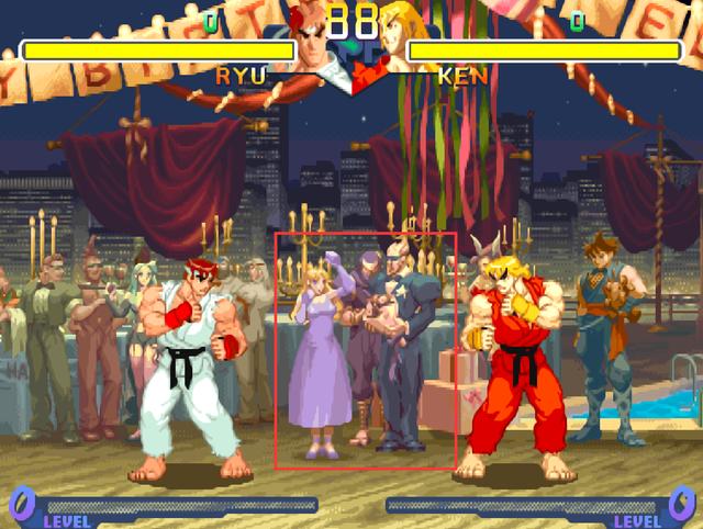 《少年街霸2》肯的场景中出现了不少的老熟人,我们在这里可以看到《恶魔战士》《赤色大地》《异形大战铁血战士》《私立正义学院》《出击飞龙》《星际格斗》等多款游戏的人气角色,而其中最显眼的自然就是突击队长和忍者翔,他们都是肯的贵客。