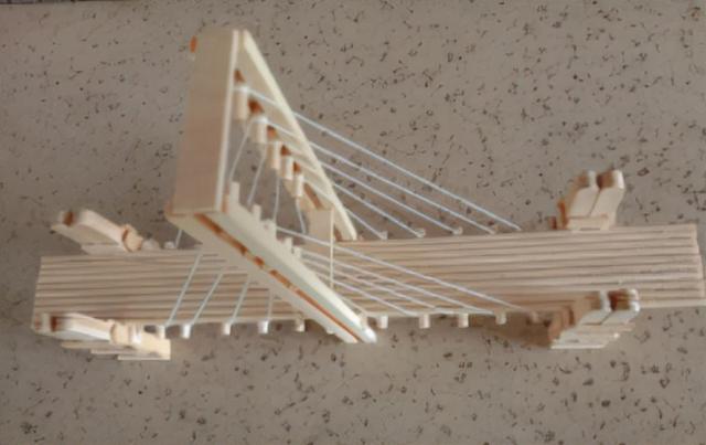 12、桥墩与桥面组装后,反面加雪糕棍固定。