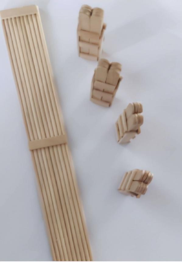 13、方形棒取两支,粘剪好的 1厘米的圆棒(2支之间间隔1厘米)每支粘5 支。