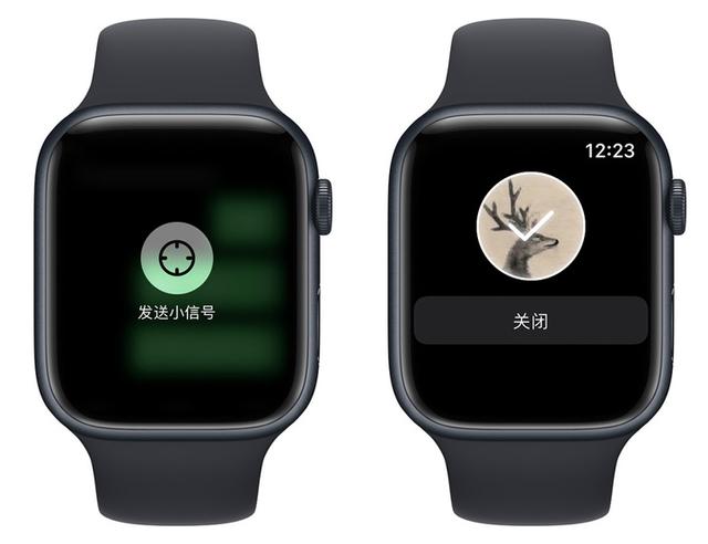 进入 Apple Watch 的微信,长按聊天内容,就会出现「发送小信号」的提示,点击后,不论是 Android 还是 iOS 用户,对方都会收到一个全屏显示的小信号。