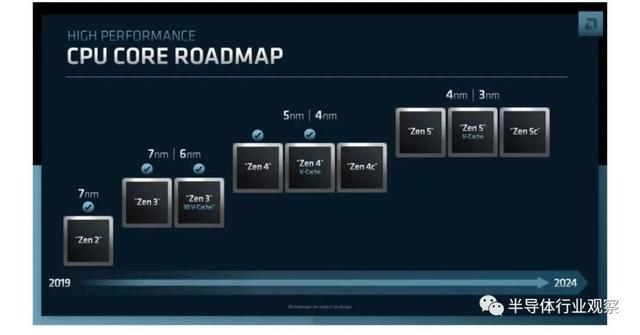 AMD 的 CPU 核心路线图并没有具体到年份,而是给了我们从 2019 年到 2024 年底的范围。Zen 4 芯片将在今年年底前出货,因此我们可以假设上述路线图的 Zen 4 部分2022 年开始。