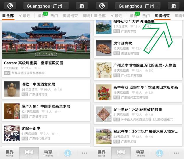 机哥喜欢调到「即将结束」一栏,这样方便看时间比较紧的展出。