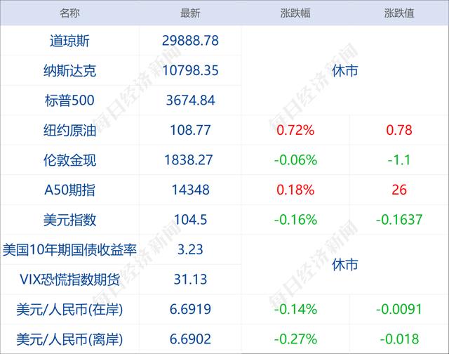 国际油价收盘走高,美油7月合约涨0.72%,报108.77美元/桶。布油8月合约涨0.96%,报114.21美元/桶。