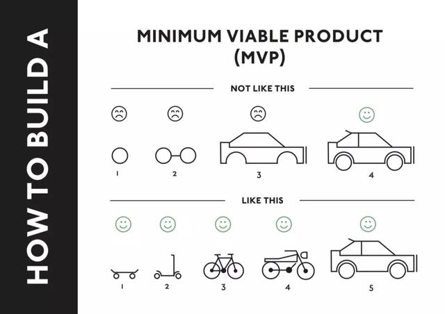 关于执行力的差别,下面这幅图做了很生动的对比;其实反映的是工程学的思维,即你需要先做出一个能用的产品,然后不断优化迭代;而不是闭门造车,为了最终的完美,毫无意义地去简单拼凑。
