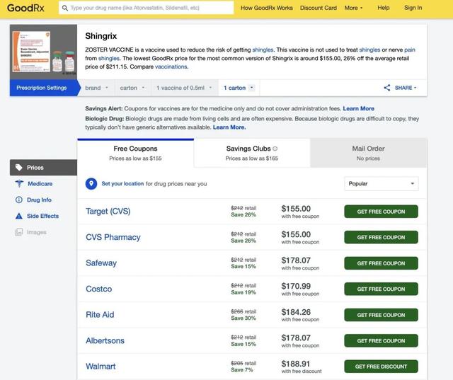 中新经纬注意到,Shingrix的美国销售价格比中国低。根据GoodRX官网,在没有任何保险和优惠券的情况下,Shingrix在美国零售价格为211.15美元每针,折合人民币1413元。而Shingrix的折扣率在7%到26%不等,即完整接种价格折合人民币约在2057元到2510元之间。