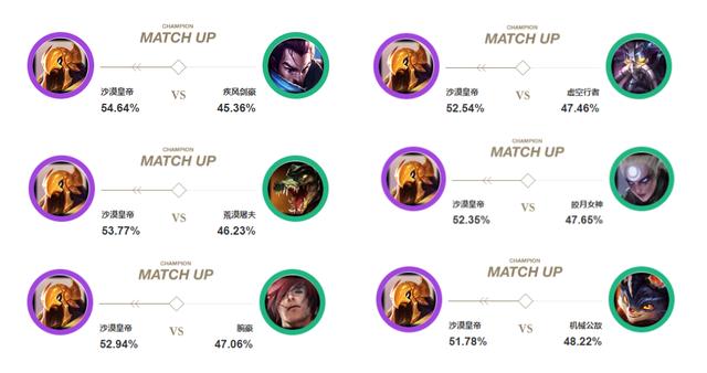沙皇在面对一些特列的中单时,胜率都是非常不错的。特别是遇到中单鳄鱼、腕豪、兰博这种偏冷门且推线快的英雄,中单沙皇是一个不错的选择!