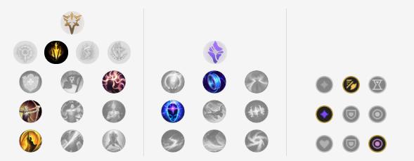 副天赋选择巫术:法力流系带,在技能命中敌人后能获得额外的法力值加成,很好的解决沙皇的蓝耗问题;超然,能提供给沙皇免费的技能急速,还能在参与击杀敌人后获得20%的小技能冷却缩减,更好的收割残局。