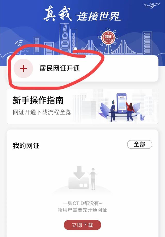 我这里已经安装好了,安装好之后,我们返回桌面,打开软件,点击跳过,在这个页面点击居民网证开通,我们看到他下面提示是公安部重磅推出的,所以信息安全有保障,我们点击居民网证开通
