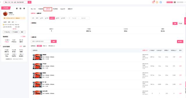 另外还可通过UP主详情查看直播分析,来了解总体的直播详情。从昨天、近7天、15天、30天、90天、180天查看UP主近期直播的情况包括直播场次、直播人气峰值、礼物收益、弹幕数,可以通过直播分析查看直播历史记录包含新增粉丝、新增大航海、直播总时长、弹幕数、峰值人气、礼物数数据变化,礼物价值分布、礼物打赏TOP20、大航海收益分布、观众性别分布、弹幕热词分析。