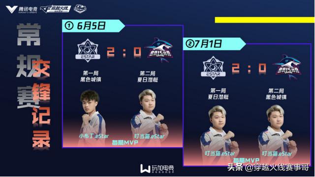 eStar与BS在常规赛共进行两次交手,这两次交手中eStar分别以2比0的成绩击败BS,这可见eStar面对BS时有着强势的表现。而在四局比赛中,叮当猫共拿下3局MVP,叮当猫无疑成为eStar取胜的关键先生。