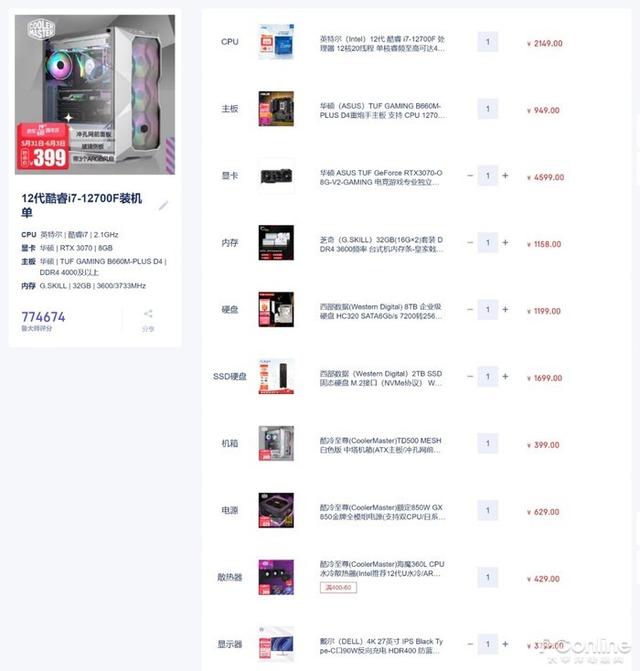 一般情况下,玩家会选择Intel Core i7-12700F,而Intel Core i7-12700基本都是大公司拿来做简单的视频后期机器。而相比i9,Intel Core i7-12700除了频率上较低和能效核心仅为4个之外,其它的基本得到保留,性能同样的很香!