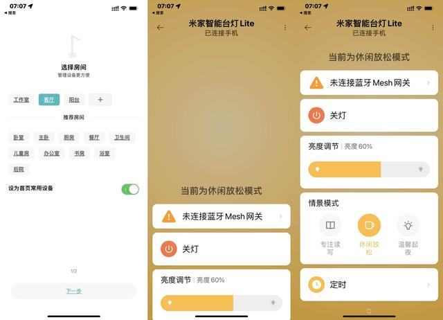 我在这一周内就遇到这样的情况,我起夜比较频繁,晚上摸索着找开关让我很没有安全感,每次手机在脚边充电,习惯性会打开手机的手电筒,但毕竟照明范围有限,而且手机电筒的强光我第一时间需要适应1-2秒,现在我直接通过手机打开米家App,打开台灯,这时候夜间开灯出发的夜灯模式,既能够看清楚周围的一切,同时光线也非常柔和,不会很刺眼,对我这样起夜人士再好不过了。