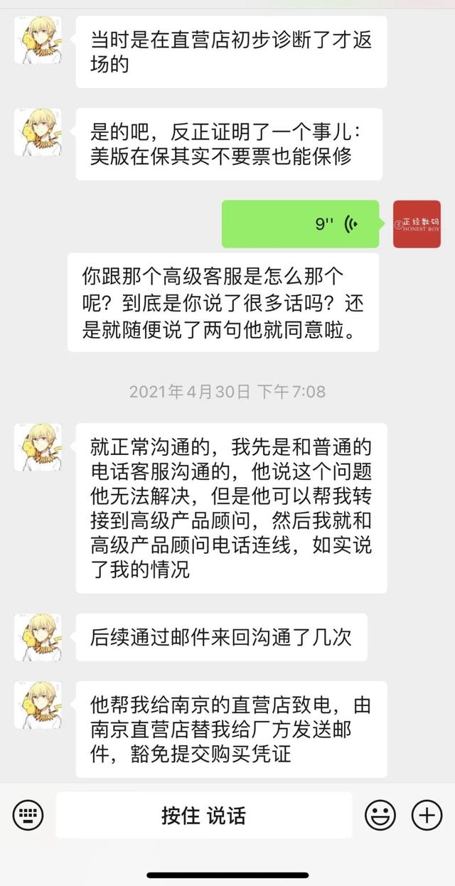 不需要返厂当场能解决的问题,如果你的话可以打动工作人员,没有发票,他们也可以直接帮你进行现场更换或者维修。(案例五,我换耳机那种情况)