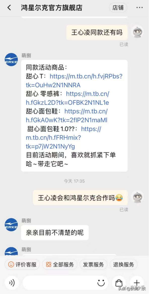 小八在鸿星尔克官方旗舰店看到,不少买家专为王心凌而来购买同款。至于王心凌是否会与鸿星尔克合作代言,客服表示目前还不清楚。