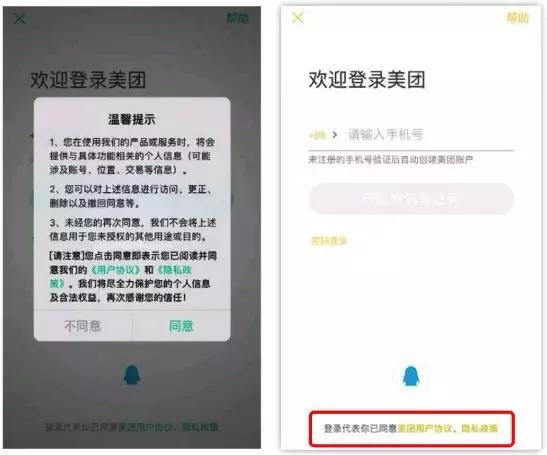 比较负责任的 App 会弹窗告知隐私政策,而在这份报告中得分比较低的,含有隐私政策的软件则是 “ 登录即同意 ” 。