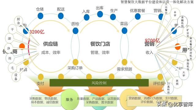 上游主要是供应方市场,包括原料供应和食材加工。其中食材的新鲜性、安全性以及送达的及时性是关键点,所以对采购地、物流配送,仓储都有较高的要求,作为餐饮最上端的食材供应环节被忽视。