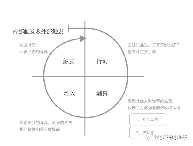 而这种形式,也符合上瘾模式。以下绘制了一张关于弹幕点赞的上瘾模式图。
