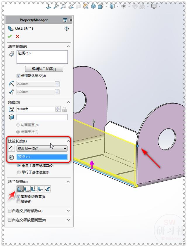 11.【边线法兰】法兰长度:成形到一顶点。