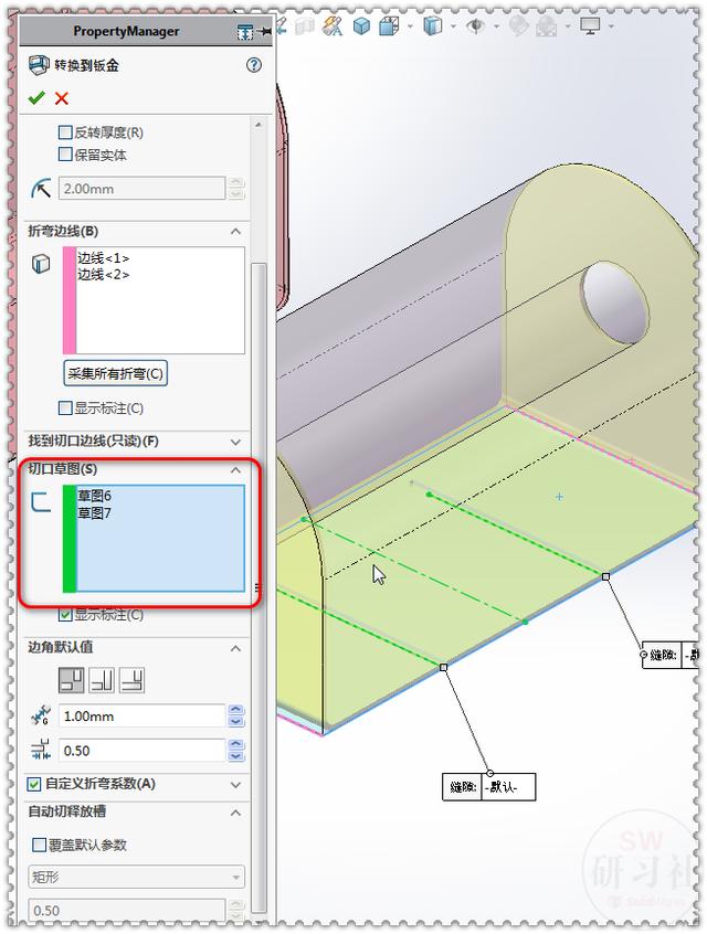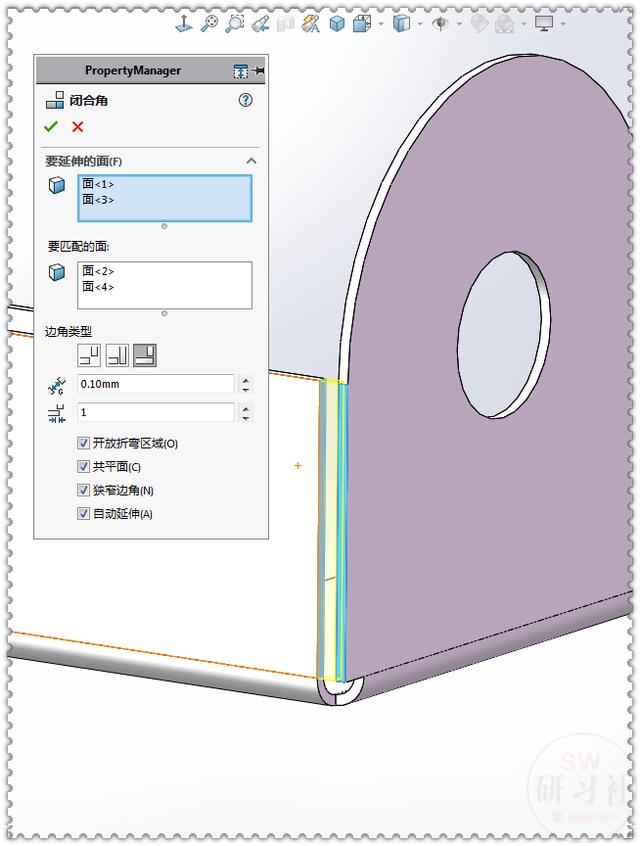 12.【闭环角】勾选:开放折弯区域。