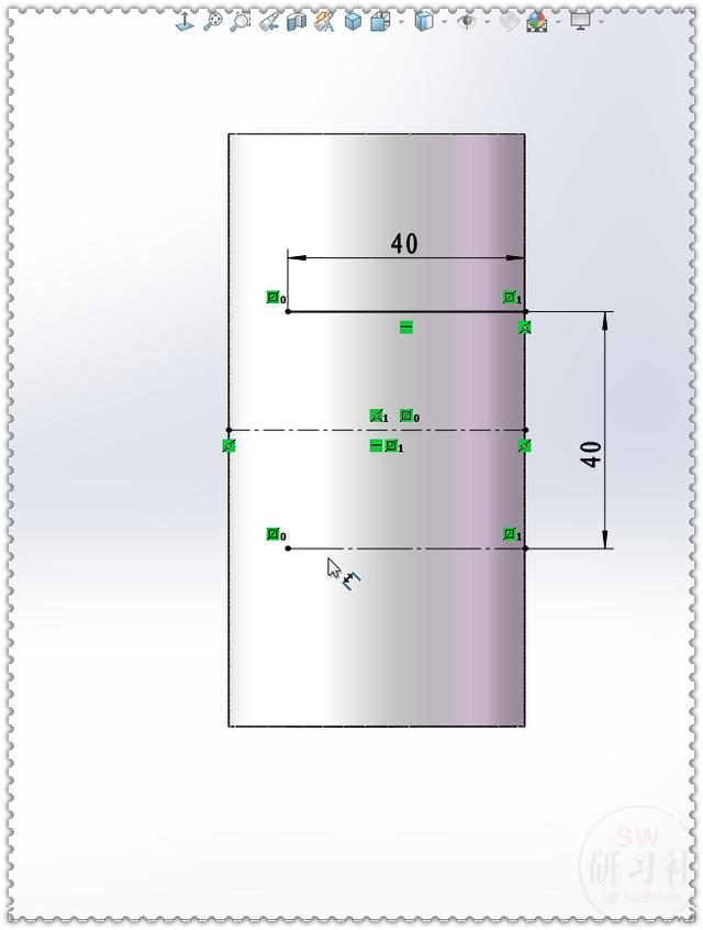6.【上视基准面】在第三个实体上画直线。