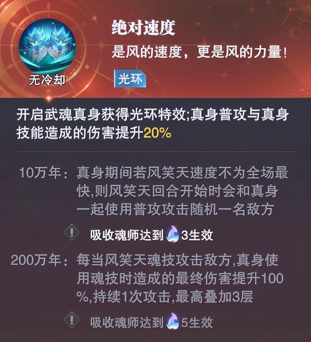 最后风笑天武魂真身光环的效果其实一般般,速度不为全场最快无疑有些违背笑天斗罗的传统,此外这个彩5星和200万年的增伤效果其实还算不错,但200万年......算了,不提也罢。