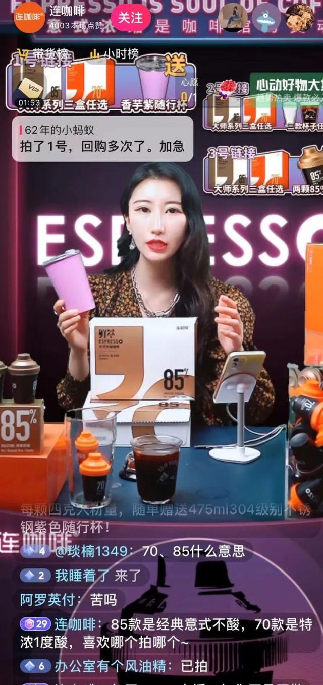 在连咖啡直播间,可以观察到,直播间提供产品本身之外,传递更多的是咖啡的文化、仪式感、专业细节等内容。