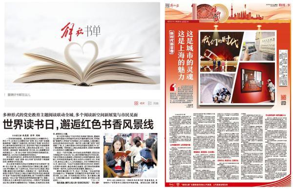弘扬中华优秀传统文化,持续关注红色文化、非遗传承、文博考古等重大事件,推出一批有特色、有品质、传播广泛的内容精品和文化品牌。“解放书单”等系列文化特色项目,展现“价值、高度、前沿”,助推优秀文化活态传承。《世界读书日,邂逅红色书香风景线》《翻开上海人的“百份红色记忆”》等作品,展现品牌文化魅力。《这是上海的魅力 这是城市的灵魂》、“用好红色文化、江南文化资源大家谈”等系列深度报道,聚焦上海文化和城市精神,推动文化创新发展。