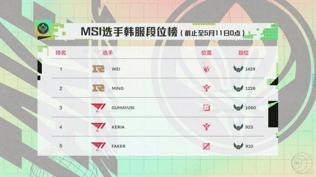MSI选手排位情况