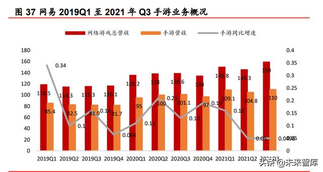 以近三年的网易财报情况来看,网易在线游戏业务营收比重 均达到 7 成以上,营收结构并未发生变化,游戏依然是网易的主 业。2021Q3,网易的在线游戏业务亦保持稳定增长,净收入 159 亿元,同比增长 15%。