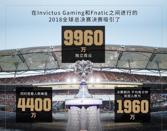 其中,S8全球总决赛IG战队和FNC战队的对决吸引了9960万独立观众,同时观看人数最高4400万,决赛期间平均每分钟收视人数为1960万,打破了电子竞技收视记录。