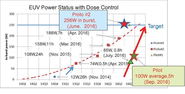 该发言人指出:“Gigaphoton在2016年宣布,可在4%的转换效率下实现250W光源输出,同时在测试时,也能以超过130W的功率连续运作119小时。三年前,ASML在类似条件下可实现170W光源。”